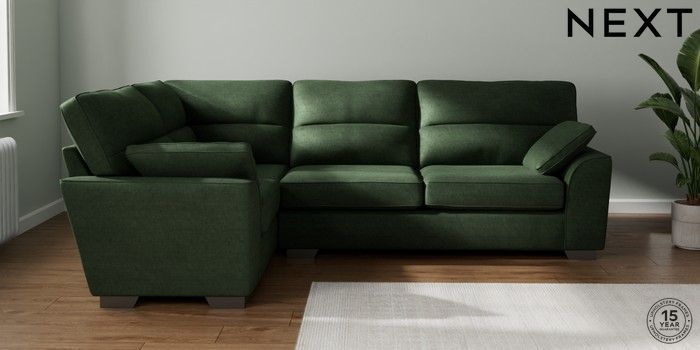 7.3.1 Buy Stamford Highback Large Corner Sofa - Left Hand Luxe Chenille Dark Green Large Square Angle - Gunmetal from the Seasons online shop Click here to use our website with more accessibility support, for example screen readers