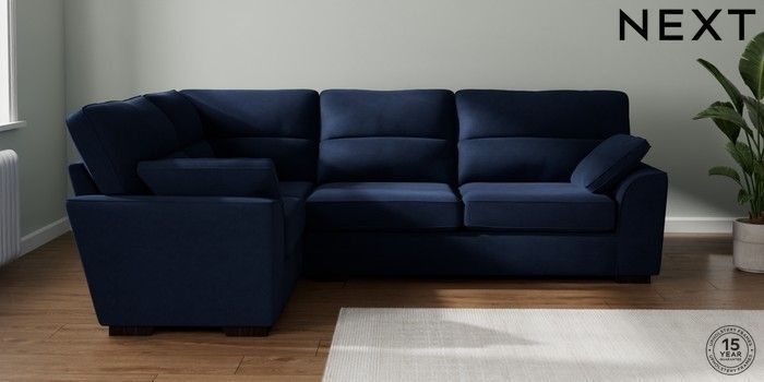 7.2.10 Buy Stamford Highback Large Corner Sofa - Left Hand Luxe Chenille Navy Blue Large Square Angle - Dark from the Seasons online shop Click here to use our website with more accessibility support, for example screen readers
