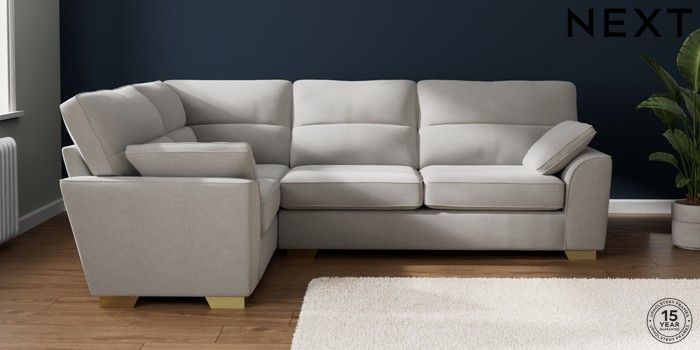7.2.10 Buy Stamford Highback Large Corner Sofa - Left Hand Natural Mix Light Grey Large Square Angle - Brushed Brass from the Seasons online shop Click here to use our website with more accessibility support, for example screen readers