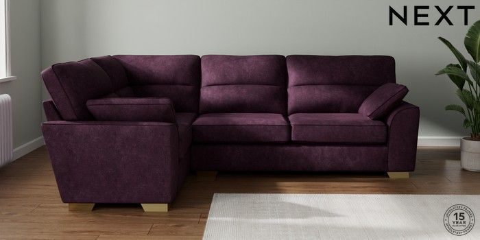 7.3.1 Buy Stamford Highback Large Corner Sofa - Left Hand Plush Chenille Dark Plum Purple Large Square Angle - Brushed Brass from the Seasons online shop Click here to use our website with more accessibility support, for example screen readers