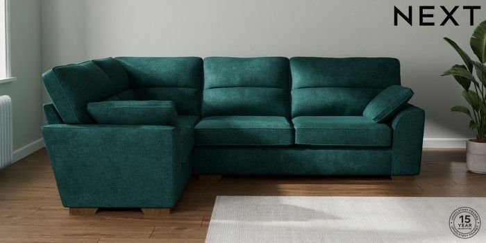 7.2.10 Buy Stamford Highback Large Corner Sofa - Left Hand Plush Chenille Dark Teal Green Large Square Angle - Mid from the Seasons online shop Click here to use our website with more accessibility support, for example screen readers
