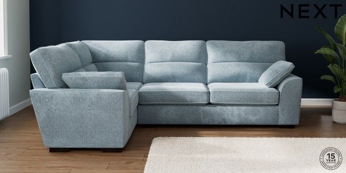 7.2.10 Buy Stamford Highback Large Corner Sofa - Left Hand Plush Chenille Light Blue Large Square Angle - Dark from the Seasons online shop Click here to use our website with more accessibility support, for example screen readers