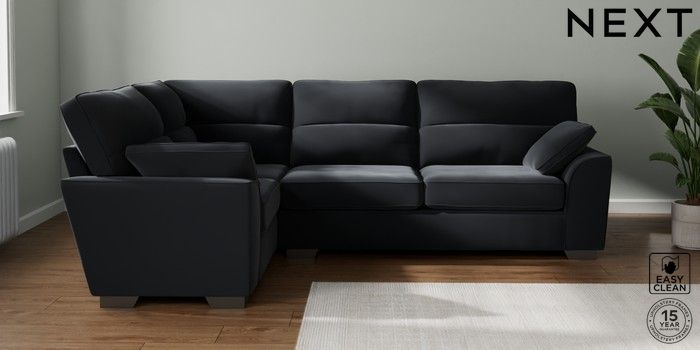 7.3.1 Buy Stamford Highback Large Corner Sofa - Left Hand Plush Velvet Easy Clean Charcoal Grey Large Square Angle - Gunmetal from the Seasons online shop Click here to use our website with more accessibility support, for example screen readers