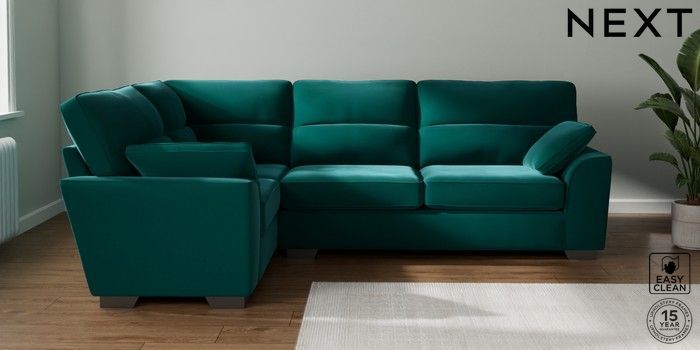 7.3.1 Buy Stamford Highback Large Corner Sofa - Left Hand Plush Velvet Easy Clean Juniper Green Large Square Angle - Gunmetal from the Seasons online shop Click here to use our website with more accessibility support, for example screen readers