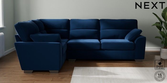 7.3.1 Buy Stamford Highback Large Corner Sofa - Left Hand Plush Velvet Easy Clean Navy Blue Large Square Angle - Gunmetal from the Seasons online shop Click here to use our website with more accessibility support, for example screen readers