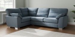 7.3.1 Buy Stamford Highback Large Corner Sofa - Left Hand Relaxed Linen Look Mid Blue Large Square Angle - Chrome Metal from the Seasons online shop Click here to use our website with more accessibility support, for example screen readers