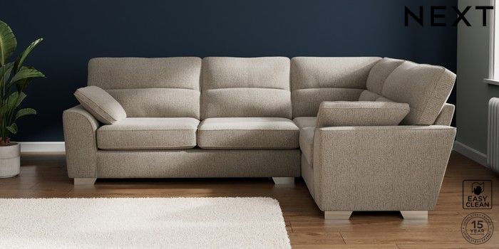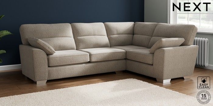 7.3.1 Buy Stamford Highback Large Corner Sofa - Right Hand Chunky Boucle Easy Clean Dove Large Square Angle - Chrome Metal from the Seasons online shop Click here to use our website with more accessibility support, for example screen readers