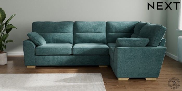 7.2.10 Buy Stamford Highback Large Corner Sofa - Right Hand Chunky Chenille Mid Teal Green Large Square Angle - Light from the Seasons online shop Click here to use our website with more accessibility support, for example screen readers
