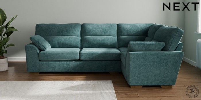 7.2.10 Buy Stamford Highback Large Corner Sofa - Right Hand Chunky Chenille Mid Teal Green Large Square Angle - Mid from the Seasons online shop Click here to use our website with more accessibility support, for example screen readers