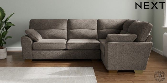7.2.10 Buy Stamford Highback Large Corner Sofa - Right Hand Chunky Chenille Mink Brown Large Square Angle - Brushed Brass from the Seasons online shop Click here to use our website with more accessibility support, for example screen readers