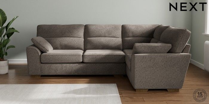 7.2.10 Buy Stamford Highback Large Corner Sofa - Right Hand Chunky Chenille Mink Brown Large Square Angle - Mid from the Seasons online shop Click here to use our website with more accessibility support, for example screen readers