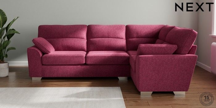 7.2.10 Buy Stamford Highback Large Corner Sofa - Right Hand Cotswold Chenille Dark Raspberry Pink Large Square Angle - Chrome Metal from the Seasons online shop Click here to use our website with more accessibility support, for example screen readers