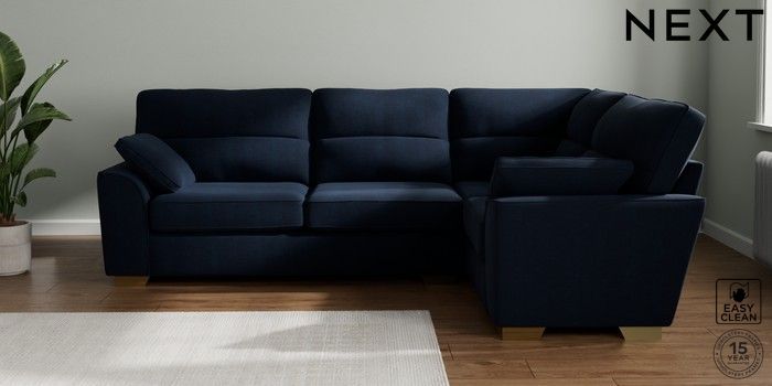 7.3.1 Buy Stamford Highback Large Corner Sofa - Right Hand Fine Chenille Easy Clean Dark Navy Blue Large Square Angle - Brushed Brass from the Seasons online shop Click here to use our website with more accessibility support, for example screen readers