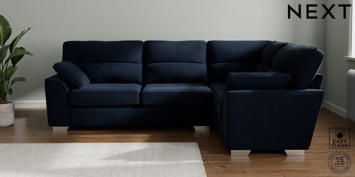 7.3.1 Buy Stamford Highback Large Corner Sofa - Right Hand Fine Chenille Easy Clean Dark Navy Blue Large Square Angle - Chrome Metal from the Seasons online shop Click here to use our website with more accessibility support, for example screen readers