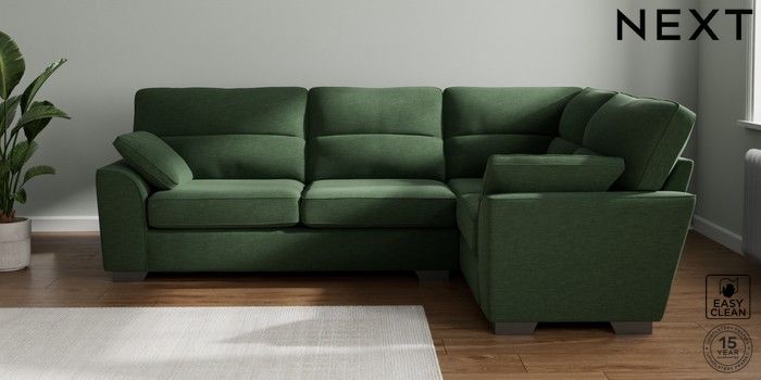 7.3.1 Buy Stamford Highback Large Corner Sofa - Right Hand Fine Chenille Easy Clean Mid Khaki Green Large Square Angle - Gunmetal from the Seasons online shop Click here to use our website with more accessibility support, for example screen readers