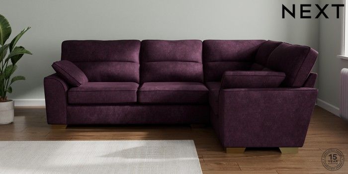 7.3.1 Buy Stamford Highback Large Corner Sofa - Right Hand Plush Chenille Dark Plum Purple Large Square Angle - Brushed Brass from the Seasons online shop Click here to use our website with more accessibility support, for example screen readers