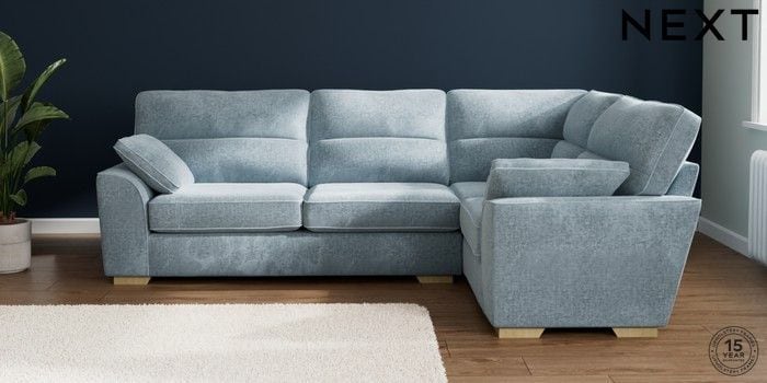 7.2.10 Buy Stamford Highback Large Corner Sofa - Right Hand Plush Chenille Light Blue Large Square Angle - Light from the Seasons online shop Click here to use our website with more accessibility support, for example screen readers