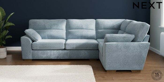 7.2.10 Buy Stamford Highback Large Corner Sofa - Right Hand Plush Chenille Light Blue Large Square Angle - Mid from the Seasons online shop Click here to use our website with more accessibility support, for example screen readers
