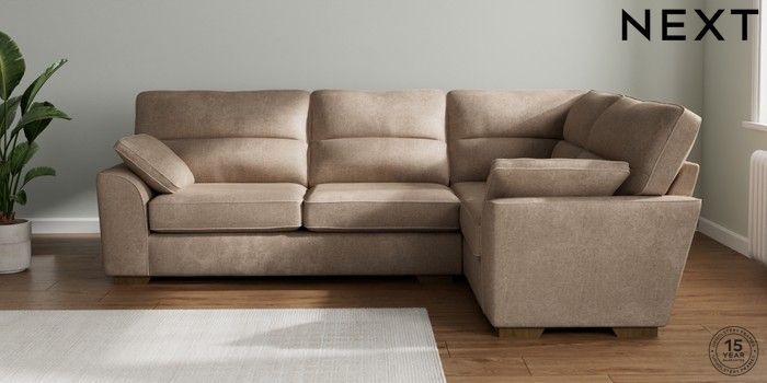 7.2.10 Buy Stamford Highback Large Corner Sofa - Right Hand Plush Chenille Mid Natural Large Square Angle - Mid from the Seasons online shop Click here to use our website with more accessibility support, for example screen readers
