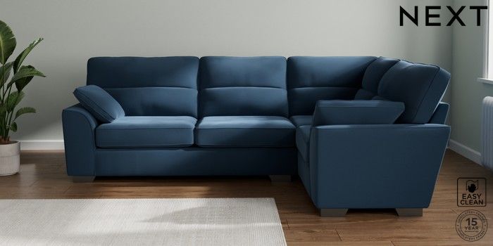 7.3.1 Buy Stamford Highback Large Corner Sofa - Right Hand Plush Velvet Easy Clean Airforce Blue Large Square Angle - Gunmetal from the Seasons online shop Click here to use our website with more accessibility support, for example screen readers
