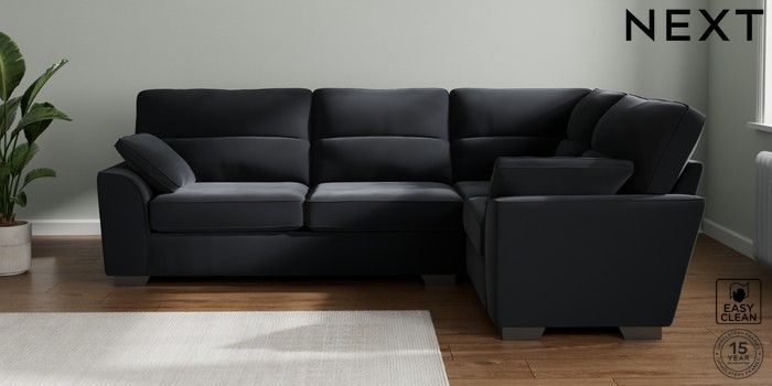 7.3.1 Buy Stamford Highback Large Corner Sofa - Right Hand Plush Velvet Easy Clean Charcoal Grey Large Square Angle - Gunmetal from the Seasons online shop Click here to use our website with more accessibility support, for example screen readers