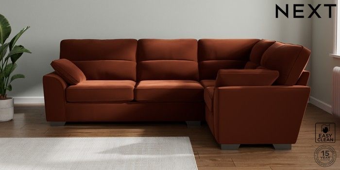 7.3.1 Buy Stamford Highback Large Corner Sofa - Right Hand Plush Velvet Easy Clean Ginger Orange Large Square Angle - Gunmetal from the Seasons online shop Click here to use our website with more accessibility support, for example screen readers