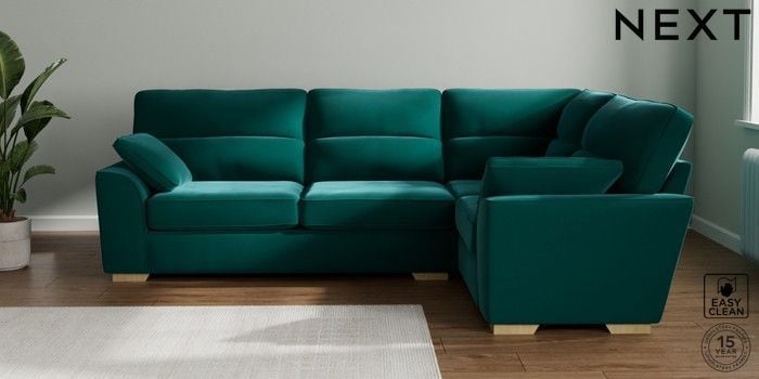 7.3.1 Buy Stamford Highback Large Corner Sofa - Right Hand Plush Velvet Easy Clean Juniper Green Large Square Angle - Light from the Seasons online shop Click here to use our website with more accessibility support, for example screen readers