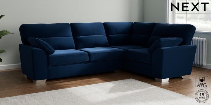7.3.1 Buy Stamford Highback Large Corner Sofa - Right Hand Plush Velvet Easy Clean Navy Blue Large Square Angle - Chrome Metal from the Seasons online shop Click here to use our website with more accessibility support, for example screen readers