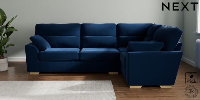 7.3.1 Buy Stamford Highback Large Corner Sofa - Right Hand Plush Velvet Easy Clean Navy Blue Large Square Angle - Light from the Seasons online shop Click here to use our website with more accessibility support, for example screen readers