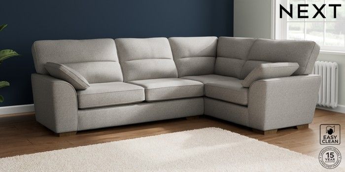 7.2.10 Buy Stamford Highback Large Corner Sofa - Right Hand Woven Chenille Easy Clean Light Grey Large Square Angle - Mid from the Seasons online shop Click here to use our website with more accessibility support, for example screen readers