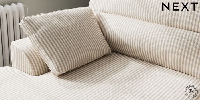 7.3.1 Buy Stamford Highback Large Sofa Chaise - Left Hand Chenille Stripe Natural Large Square Angle - Brushed Brass from the Seasons online shop Click here to use our website with more accessibility support, for example screen readers