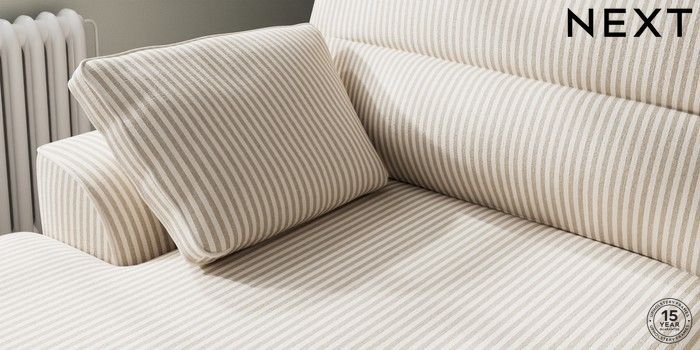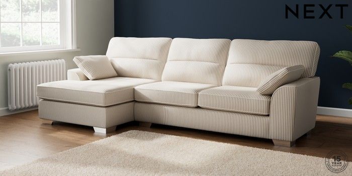 7.3.1 Buy Stamford Highback Large Sofa Chaise - Left Hand Chenille Stripe Natural Large Square Angle - Chrome Metal from the Seasons online shop Click here to use our website with more accessibility support, for example screen readers