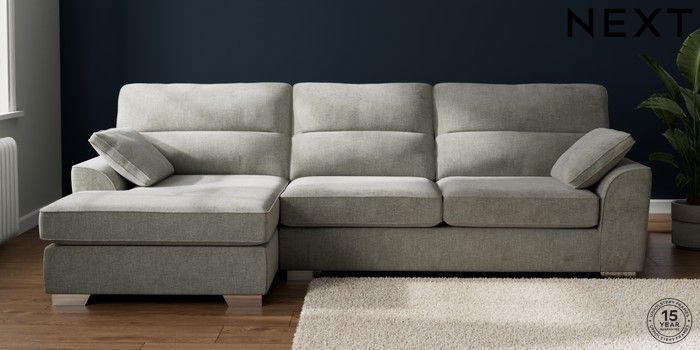 7.2.10 Buy Stamford Highback Large Sofa Chaise - Left Hand Chunky Chenille Light Grey Large Square Angle - Chrome Metal from the Seasons online shop Click here to use our website with more accessibility support, for example screen readers