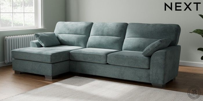 7.3.1 Buy Stamford Highback Large Sofa Chaise - Left Hand Chunky Chenille Light Teal Green Large Square Angle - Gunmetal from the Seasons online shop Click here to use our website with more accessibility support, for example screen readers
