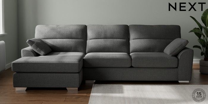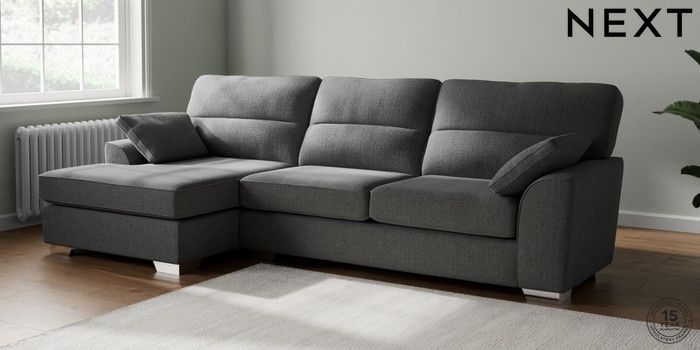 7.2.10 Buy Stamford Highback Large Sofa Chaise - Left Hand Chunky Texture Dark Grey Large Square Angle - Chrome Metal from the Seasons online shop Click here to use our website with more accessibility support, for example screen readers