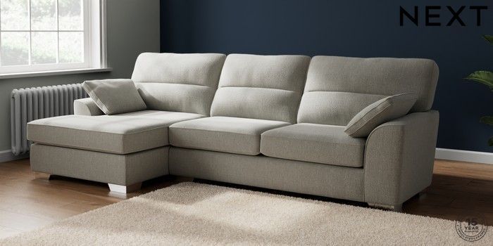 7.3.1 Buy Stamford Highback Large Sofa Chaise - Left Hand Chunky Texture Dove Large Square Angle - Chrome Metal from the Seasons online shop Click here to use our website with more accessibility support, for example screen readers