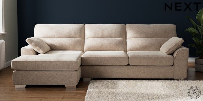 7.3.1 Buy Stamford Highback Large Sofa Chaise - Left Hand Cotswold Chenille Light Natural Large Square Angle - Chrome Metal from the Seasons online shop Click here to use our website with more accessibility support, for example screen readers