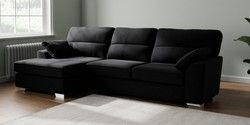 7.3.1 Buy Stamford Highback Large Sofa Chaise - Left Hand Fine Chenille Easy Clean Black Large Square Angle - Chrome Metal from the Seasons online shop Click here to use our website with more accessibility support, for example screen readers