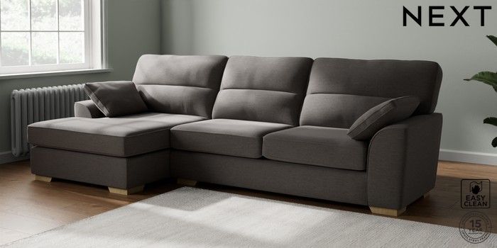 7.2.10 Buy Stamford Highback Large Sofa Chaise - Left Hand Fine Chenille Easy Clean Dark Smoke Grey Large Square Angle - Light from the Seasons online shop Click here to use our website with more accessibility support, for example screen readers