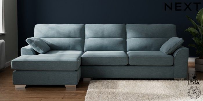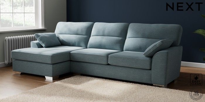 7.3.1 Buy Stamford Highback Large Sofa Chaise - Left Hand Fine Chenille Easy Clean Mid Blue Large Square Angle - Chrome Metal from the Seasons online shop Click here to use our website with more accessibility support, for example screen readers