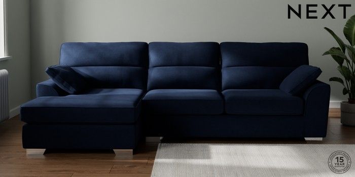 7.3.1 Buy Stamford Highback Large Sofa Chaise - Left Hand Luxe Chenille Navy Blue Large Square Angle - Chrome Metal from the Seasons online shop Click here to use our website with more accessibility support, for example screen readers
