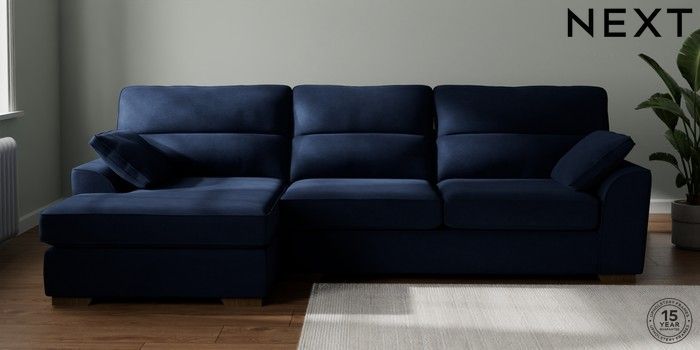7.2.10 Buy Stamford Highback Large Sofa Chaise - Left Hand Luxe Chenille Navy Blue Large Square Angle - Mid from the Seasons online shop Click here to use our website with more accessibility support, for example screen readers