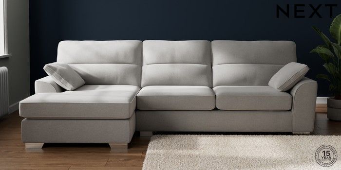 7.3.1 Buy Stamford Highback Large Sofa Chaise - Left Hand Natural Mix Light Grey Large Square Angle - Chrome Metal from the Seasons online shop Click here to use our website with more accessibility support, for example screen readers