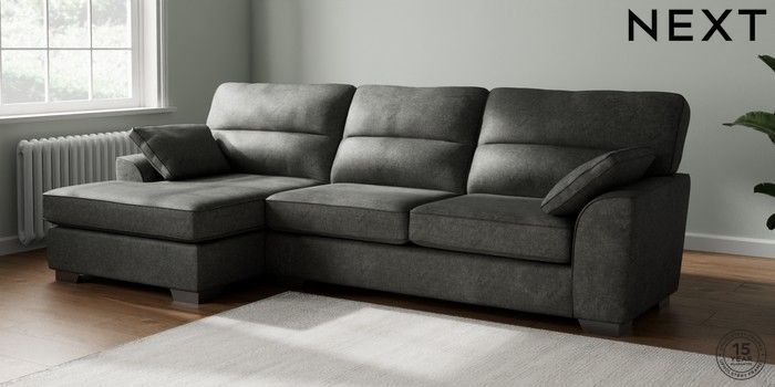 7.3.1 Buy Stamford Highback Large Sofa Chaise - Left Hand Plush Chenille Dark Grey Large Square Angle - Gunmetal from the Seasons online shop Click here to use our website with more accessibility support, for example screen readers