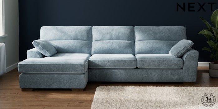 7.2.10 Buy Stamford Highback Large Sofa Chaise - Left Hand Plush Chenille Light Blue Large Square Angle - Mid from the Seasons online shop Click here to use our website with more accessibility support, for example screen readers