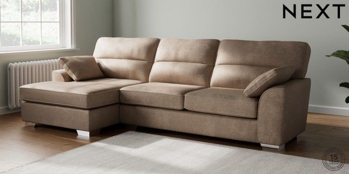 7.3.1 Buy Stamford Highback Large Sofa Chaise - Left Hand Plush Chenille Mid Natural Large Square Angle - Chrome Metal from the Seasons online shop Click here to use our website with more accessibility support, for example screen readers
