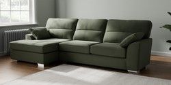 7.3.1 Buy Stamford Highback Large Sofa Chaise - Left Hand Relaxed Linen Look Dark Green Large Square Angle - Chrome Metal from the Seasons online shop Click here to use our website with more accessibility support, for example screen readers
