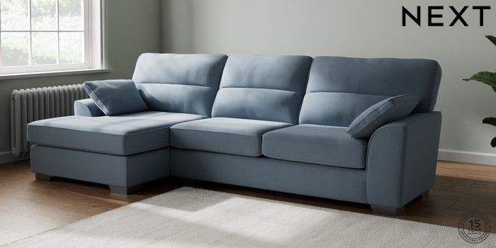 7.3.1 Buy Stamford Highback Large Sofa Chaise - Left Hand Relaxed Linen Look Mid Blue Large Square Angle - Gunmetal from the Seasons online shop Click here to use our website with more accessibility support, for example screen readers
