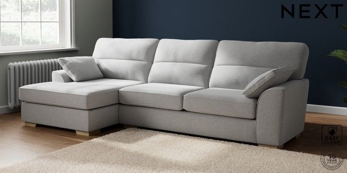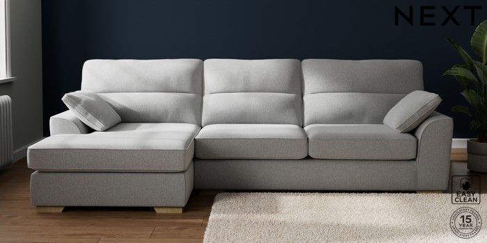 7.2.10 Buy Stamford Highback Large Sofa Chaise - Left Hand Tweedy Blend Easy Clean Light Silver Grey Large Square Angle - Light from the Seasons online shop Click here to use our website with more accessibility support, for example screen readers