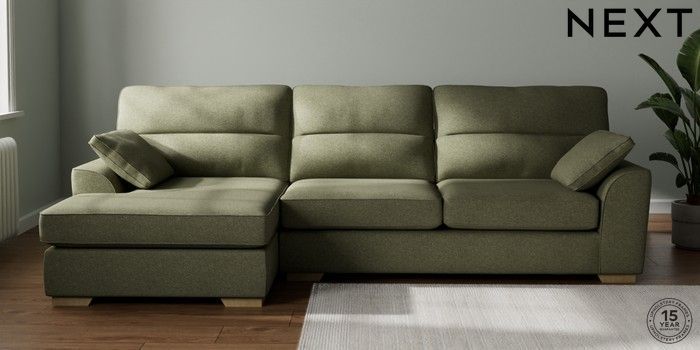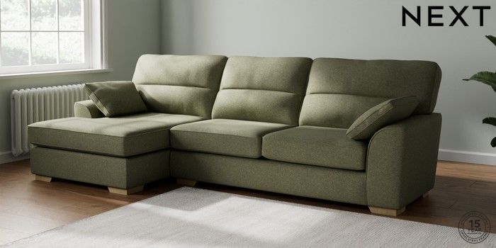 7.3.1 Buy Stamford Highback Large Sofa Chaise - Left Hand Tweedy Chenille Mid Moss Green Large Square Angle - Light from the Seasons online shop Click here to use our website with more accessibility support, for example screen readers